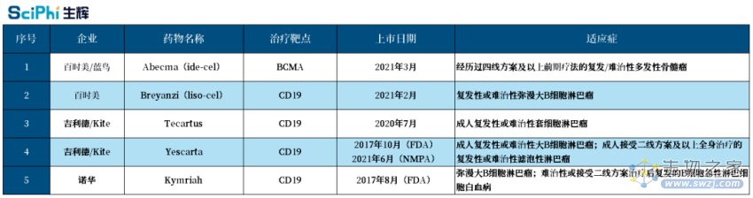 ▲图|部分已上市 CAR-T 疗法简介(来源:公开资料,生辉整理)