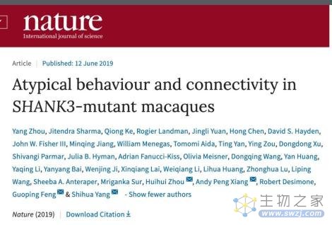 冯国平等人之前的研究显示,SHANK3缺失会导致小鼠、猴子的突触功能障碍和行为异常。