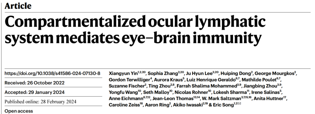 《自然》:眼睛竟是大脑的免疫屏障!耶鲁团队发现,眼睛后部与脑膜淋巴管共享回路,具有统一的免疫反应