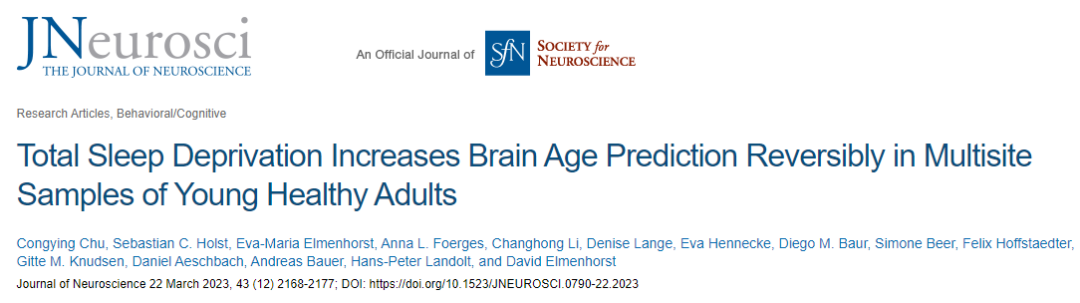近日,德国神经科学与医学研究所的研究人员在《神经科学杂志》" Journal of Neuroscience "上发表了一篇题为" Total Sleep Deprivation Increases Brain Age Prediction Reversibly in Multisite Samples of Young Healthy Adults "的研究论文。