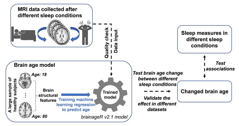 在第二天早晨和恢复性睡眠后的早晨收集了参与者的大脑MRI数据。然后,研究人员使用一种名为 BrainageR 的机器学习算法确定了参与者大脑的表观年龄,并将其与同一个人在整夜睡眠后的大脑MRI进行比较。