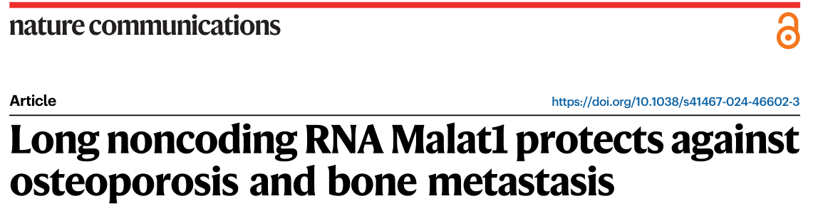 近日,来自美国德克萨斯大学的研究者们在Nature Communications杂志上发表了题为“Long noncoding RNA Malat1 protects against osteoporosis and bone metastasis”的文章,该研究表明Malat1是一种防止骨质疏松和骨转移的lncRNA。